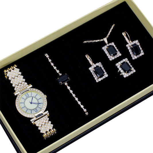 Roman Pattern Diamond-embedded Women's Watch Jewelry Gift Set Bracelet Watch Women's Light Luxury Full Diamond Good-looking