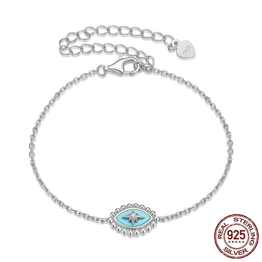 Eight-pointed Stars Devil's Eye Bracelet Sterling Silver White Gold Plated